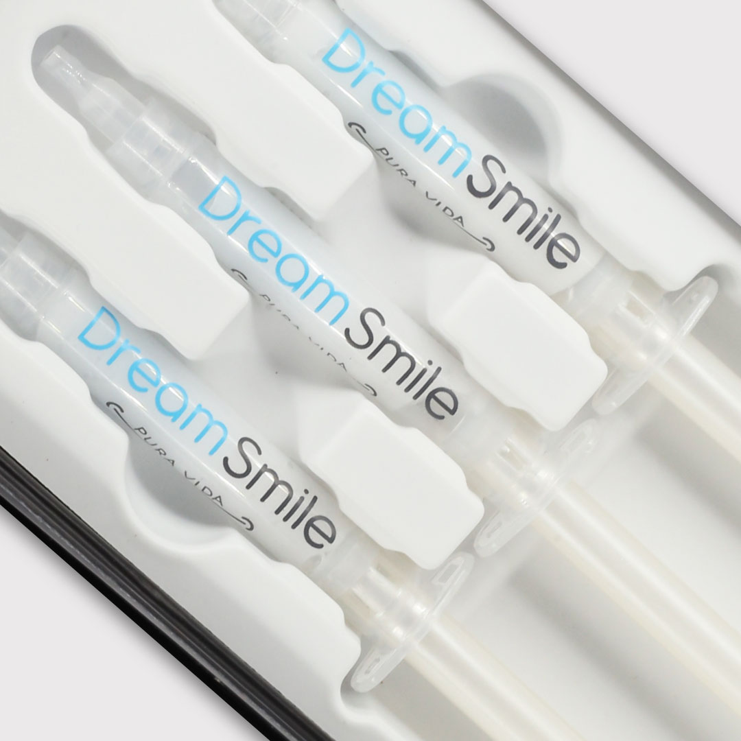Se debe aplicar 1/4 de jeringa para los dientes de arriba y 1/4 de jeringa para los dientes de abajo. Es decir, debes utilizar la mitad de una jeringa por día.